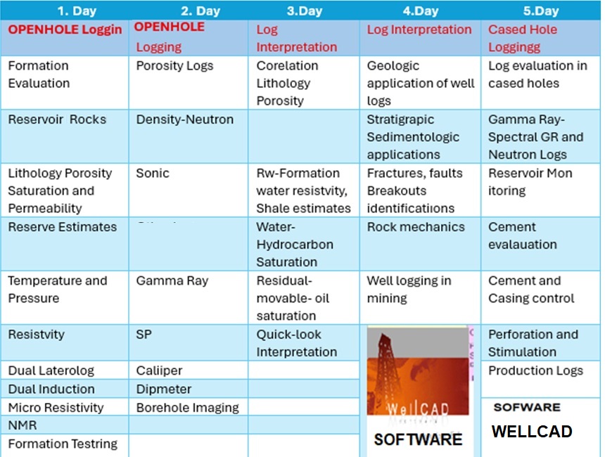logging course on the internet Click below link to register (and more information) for PEKLINE's 5 days Well logging course: Well Logging Course - By Yalcin Pekiner - You can have this course either on Internet or in Classroom Learning Environment (in Ankara/Turkey or in your country) |